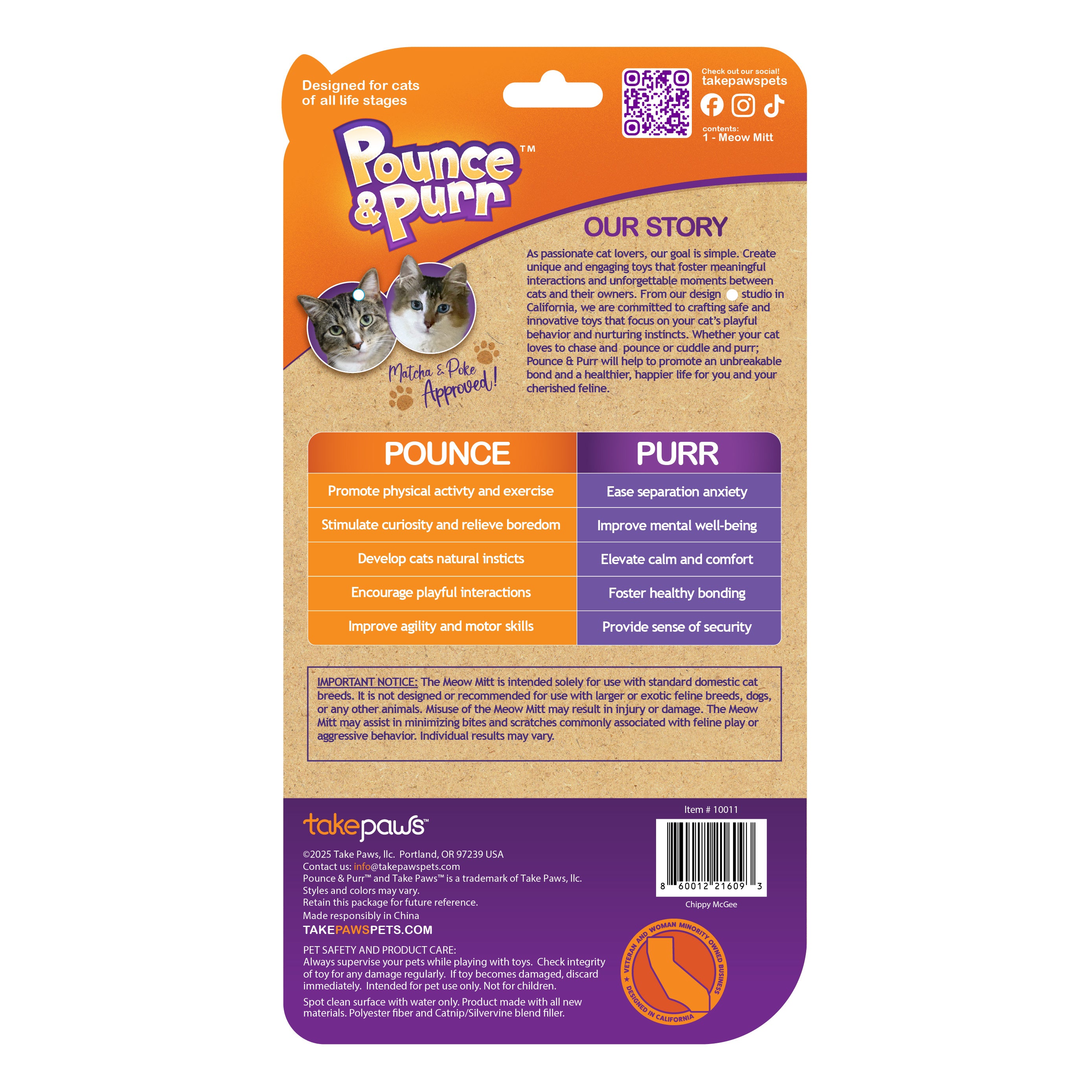 Meet Chippy McGee — the cheeky squirrel with a knack for causing a ruckus! The Meow Mitt is a wearable plush mitten designed for hands-on fun with your cat. With two layers of protection, floppy limbs, crinkly textures, and a hidden pocket of catnip and silvervine, this mitten keeps Chippy and your curious kitty locked in playful mayhem. Whether your feline loves to pounce, bat, or go full squirrel-mode, this wearable toy brings nonstop action — while helping shield your hand and arm from those enthusiastic claws. Slip it on and let the chaos begin!
