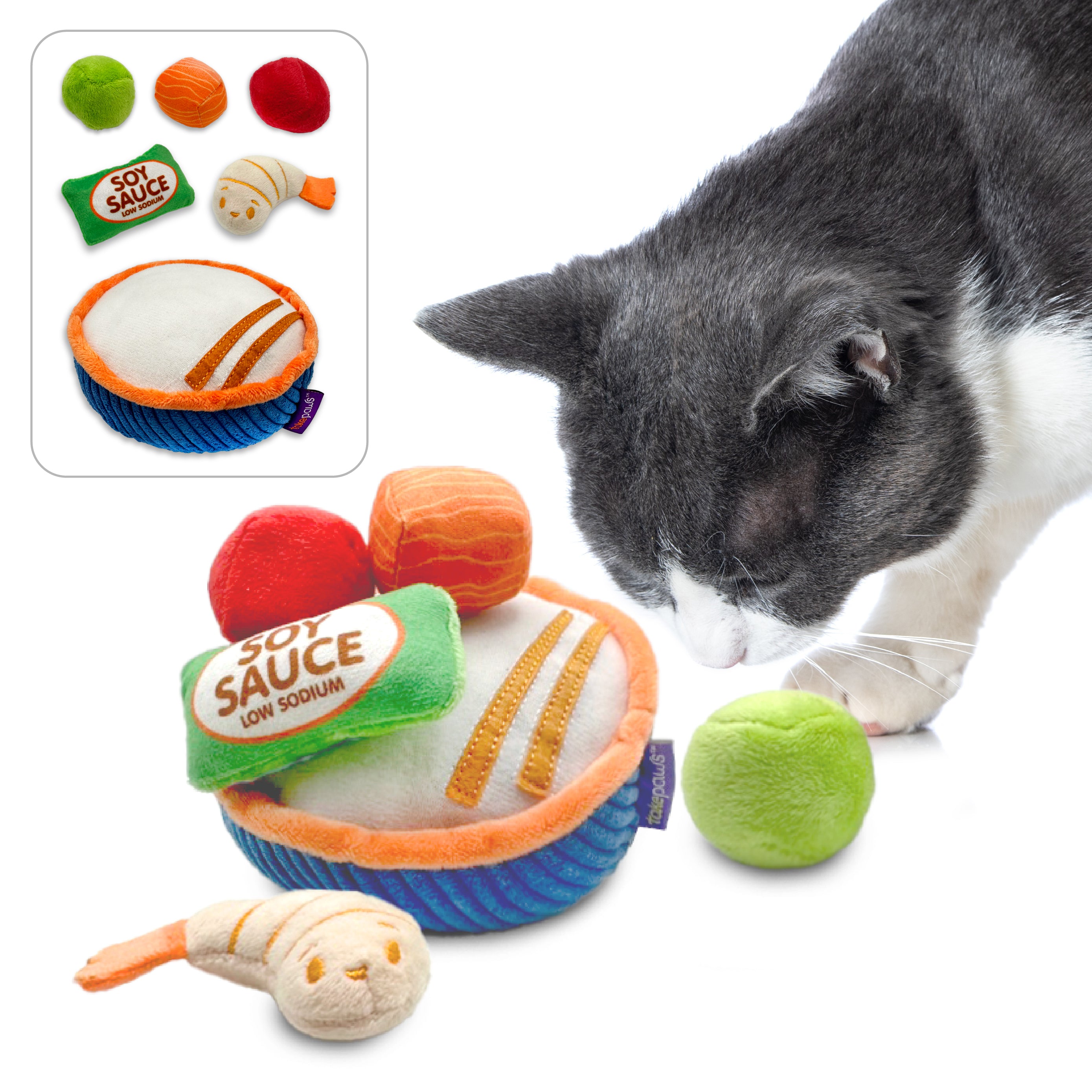 Pounce & Purr™ - Poke Bowl Deluxe Plush Cat Toy Set with Catnip and Silvervine - 6 pcs